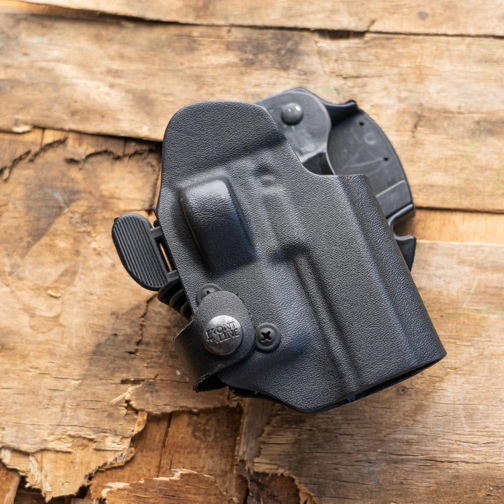 עשוי מחומר קיידקס, המבטיח התאמה מדויקת וחזקה לביצועים מיטביים. עיצוב פתוח בחלק העליון לגישה נוחה ומשיכה חלקה. מנגנון SR נועל ומאבטח את מגן ההדק כאשר האקדח בנרתיק. לחיצה על ידית SR™ משחררת את מגן ההדק לגישה מהירה לאקדח.