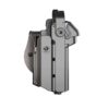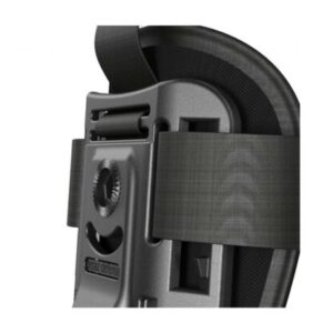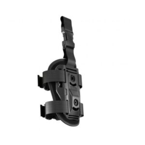 מעל הריפוד הוספנו מסגרת ירך מפולימר עם שתי אפשרויות גובה להתקנת הנרתיק, המספקת מבנה ארגונומי שיושב בנוחות על הגוף. גם הריפוד וגם בסיס הפולימר מחוברים באמצעות רצועה למתאם פולימרי מסתובב שמחובר לקליפס אחיזה (paddle). תצורה זו מאפשרת לך לכוון את זווית הרצועה ולהבטיח שהיא יושבת בצורה מושלמת על הרגל שלך. החלק העליון של הקליפס מספק יתרון של לבישה מהירה של הציוד, והוא גם מתוכנן לשבת בצורה בטוחה על חגורה.