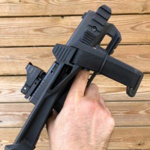 הערכה כוללת: רצועת בנג'י, מסילת צד לכוונת השלכה, ידית הסתערות עם מקום למחסנית mg9
